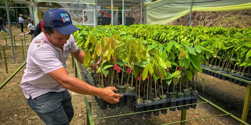 Con una inversión de $179 millones, el centro contempla la producción de 50.000 plántulas de cacao. En esta primera fase ya se entregaron 20.000 plántulas, que beneficiarán directamente a 100 familias productoras. De manera permanente, se espera impactar cada año a más familias, aportando al desarrollo económico y social del territorio.